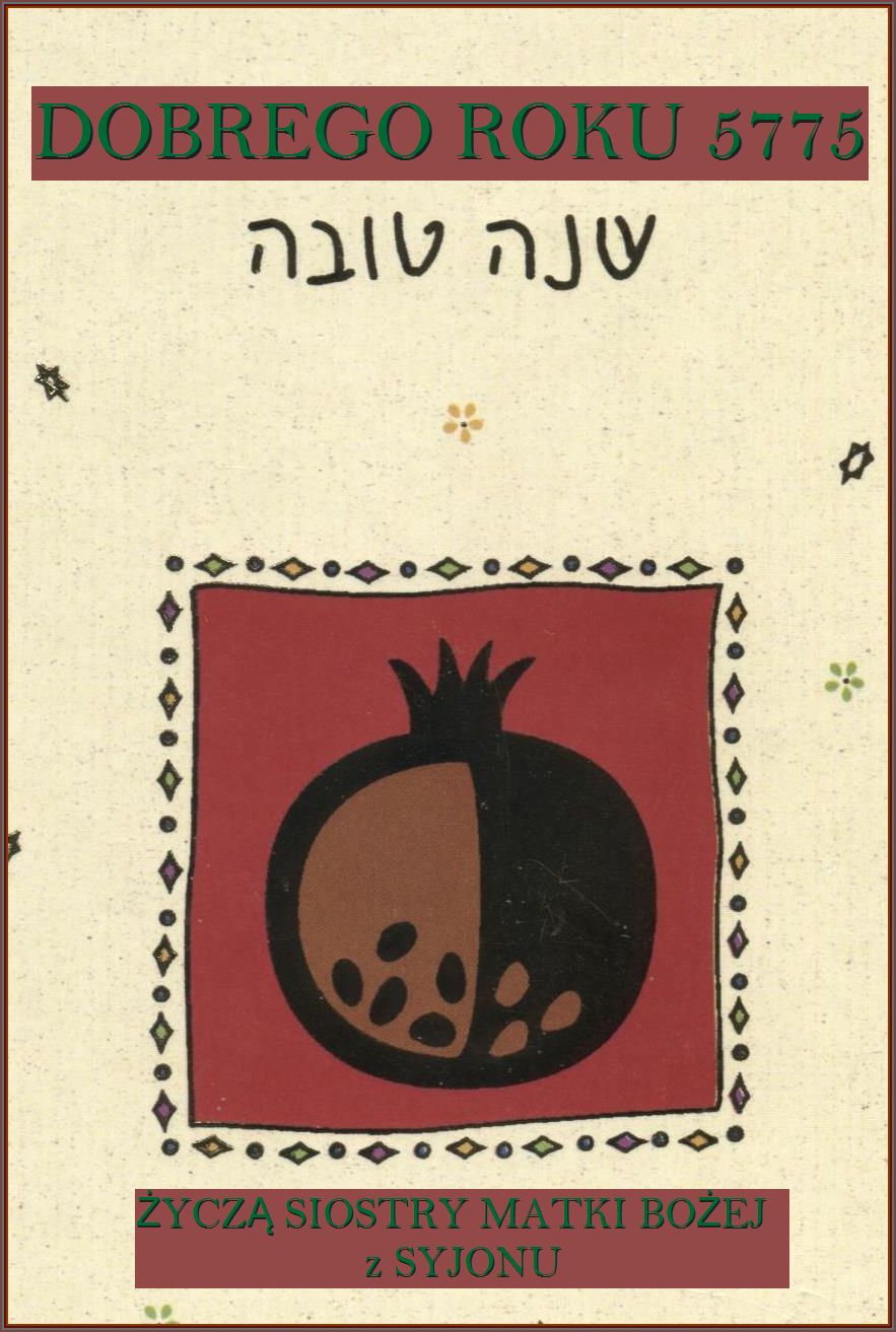 24.IX.2014. wieczór. Rozpoczyna się nowy 5775. rok według kalendarza żydowskiego (Rosz HaSzana). Wspólnie z Filipem A. Cunninghamem, nowym prezesem ICCJ i z Siostrami Matki Bożej z Syjonu składamy życzenia: